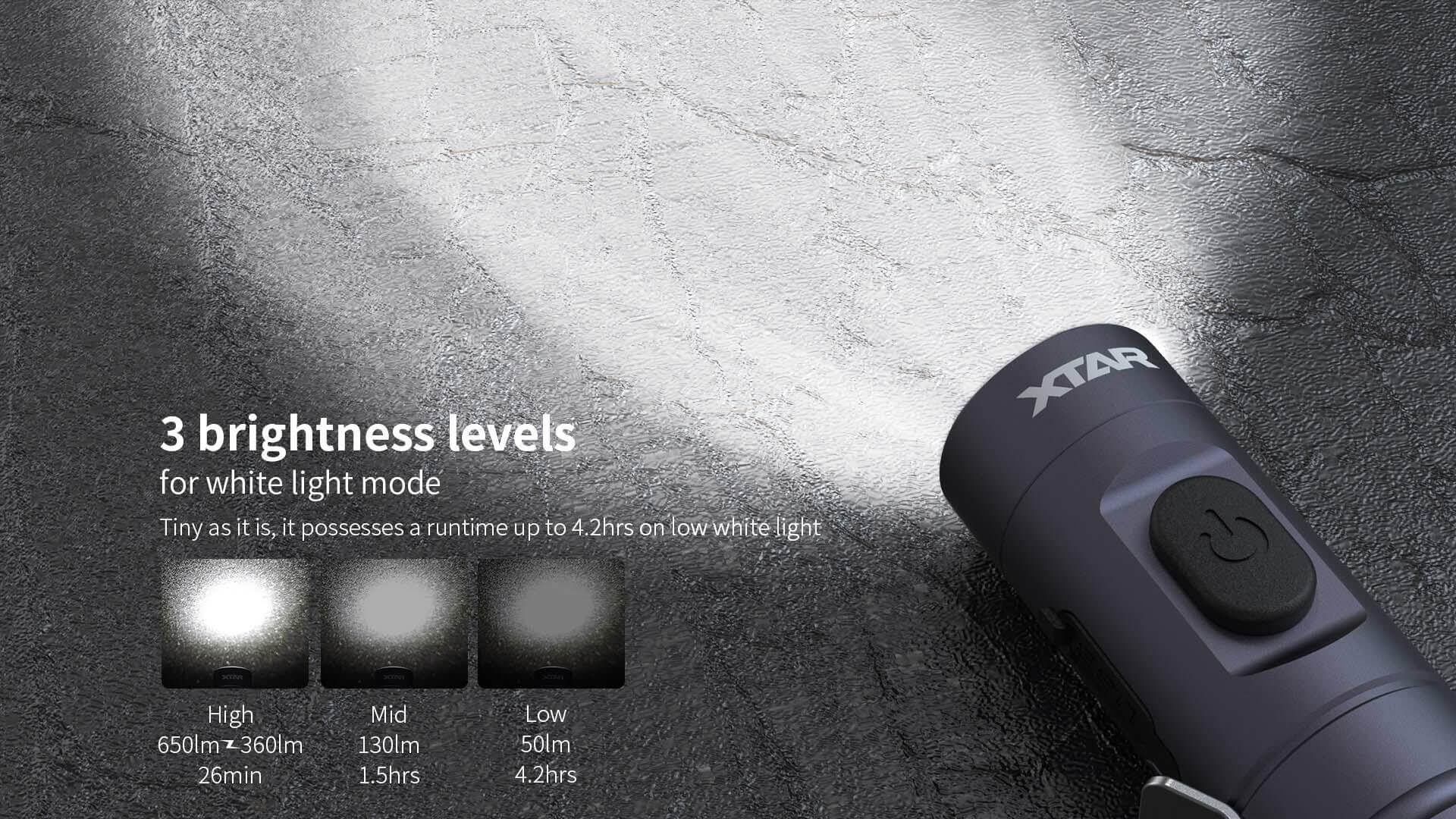 La XTAR T2 es una linterna LED compacta de alto rendimiento diseñada para uso EDC (Everyday Carry). Con un tamaño ultracompacto y una potencia de hasta 650 lúmenes, ofrece una iluminación potente ideal para uso diario, camping, emergencias o actividades al aire libre.