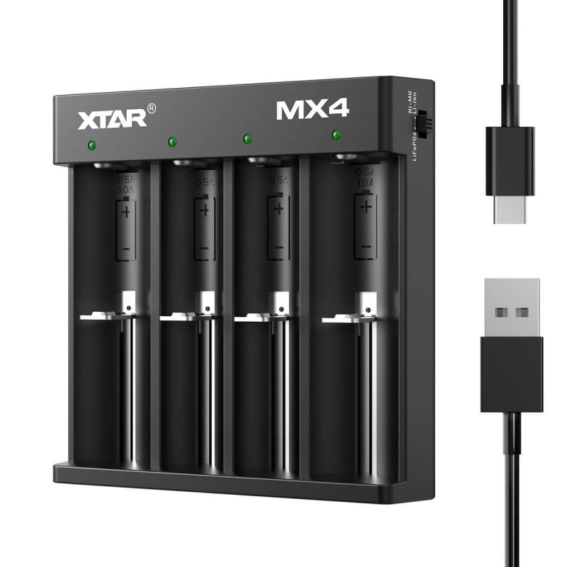 Cargador Universal XTAR MX4 MiniMixer – Inteligente y Compacto para Li-Ion, LiFePO4 y Ni-MH/Ni-Cd